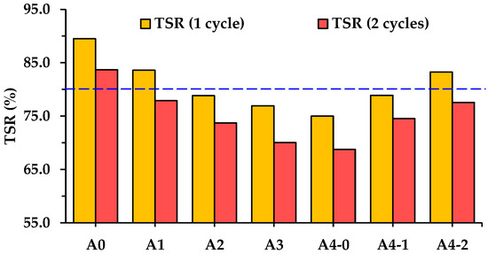 TSR of asphalt mixtures after different cycles of freeze–thaw damage.