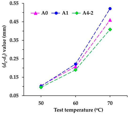 The (d2 − d1) values of asphalt mixtures obtained from a rutting test.