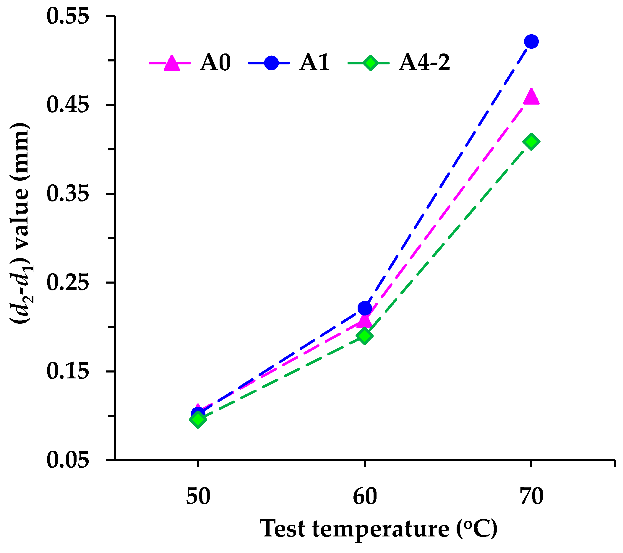 High-temperature deformation resistance | Plate specimens Length: 300 mm Width: 300 mm Thickness: 50 mm | Test temperature: 50, 60 and 70 °C Wheel pressure: 0.7 MPa wheel speed: 42 pass/min Test duration: 1 h per test |
