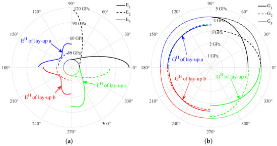Figure 9 shows the modeling results of the dome and stacking sequences a, b, and c. There is no doubt that the modeling of composite pressure vessels is complex. A layer of composite material is very thin, and the composite layers have multiple directional characteristics, while the tank generally requires a large number of composite layers. The output of professional fiber-winding software is not exactly the same as reality [14]. In the case of predicting burst pressure, microscale information is often not required. Under the action of internal pressure, the stiffness response of composite layers is determined, which provides a basis for the application of the homogenization method. Modeling can be simplified at the macro level by using homogenization theory.