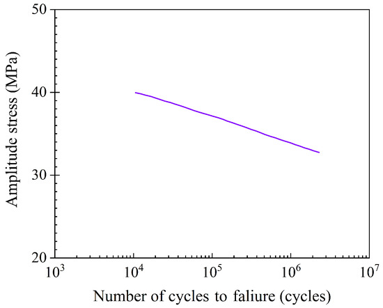 To verify that the prediction of the fatigue life of the homogenized tank is reliable, the commercial software ABAQUS® and FE-SAFE are used for fatigue analysis. The liner is made of polyamide PA66, and the S-N curve obtained from a typical uniaxial test [50] is shown in Figure 23. The stress ratio is 0, so the Goodman algorithm [51] in FE-SAFE is introduced to correct the S-N curve.