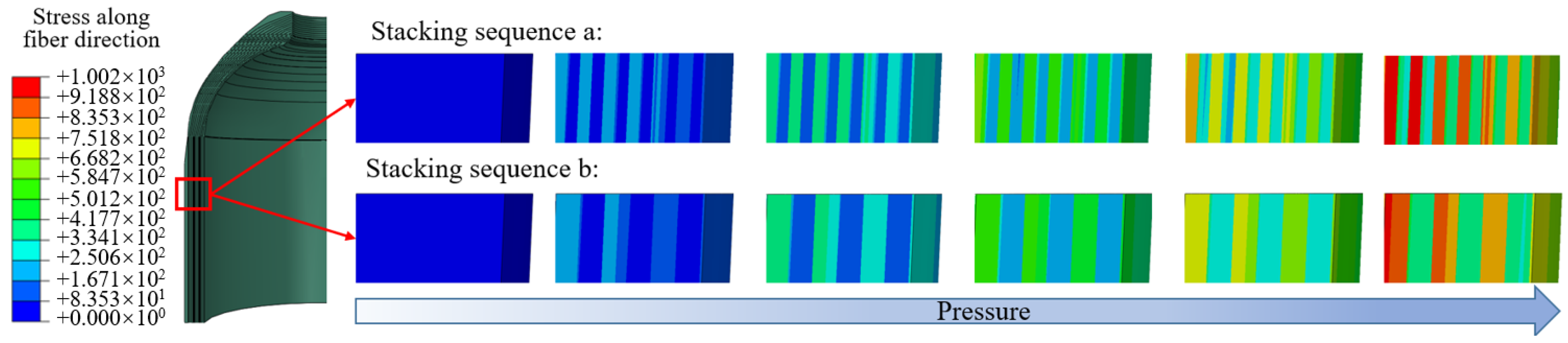 - Li, C.; Qin, Z.; Li, Y.; Chen, Z.; Liu, J.; Liang, J.; Feng, J. Investigation on mechanical behaviors under fatigue load of stacking sequences considering autofrettage process for highly reliable hydrogen storage vessel. J. Energy Storage 2024, 82, 110538. [Google Scholar] [CrossRef]