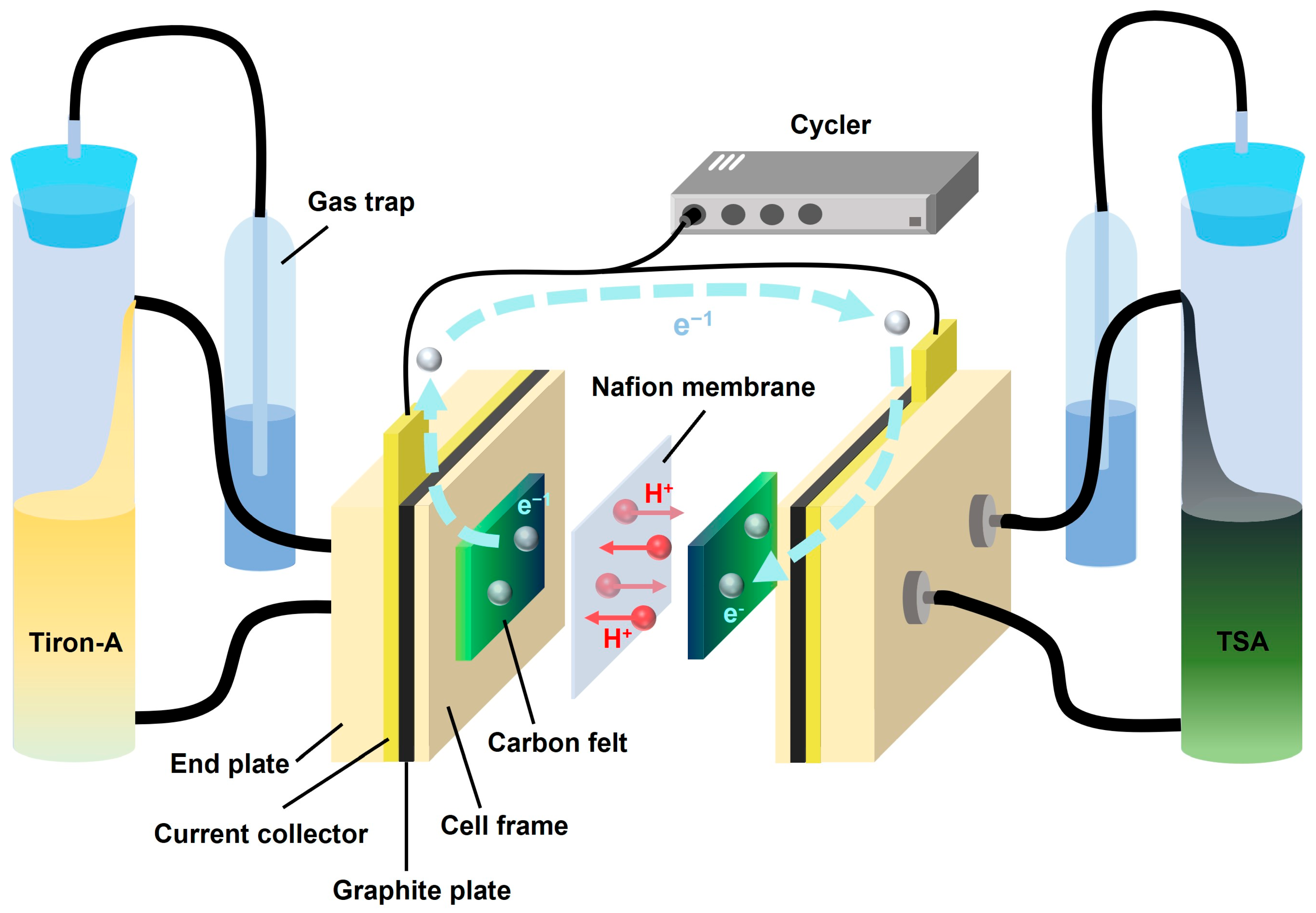 - Xu, Y.; Wen, Y.-H.; Cheng, J.; Cao, G.-P.; Yang, Y.-S. A study of tiron in aqueous solutions for redox flow battery application. Electrochim. Acta 2010, 55, 715–720. [Google Scholar] [CrossRef]