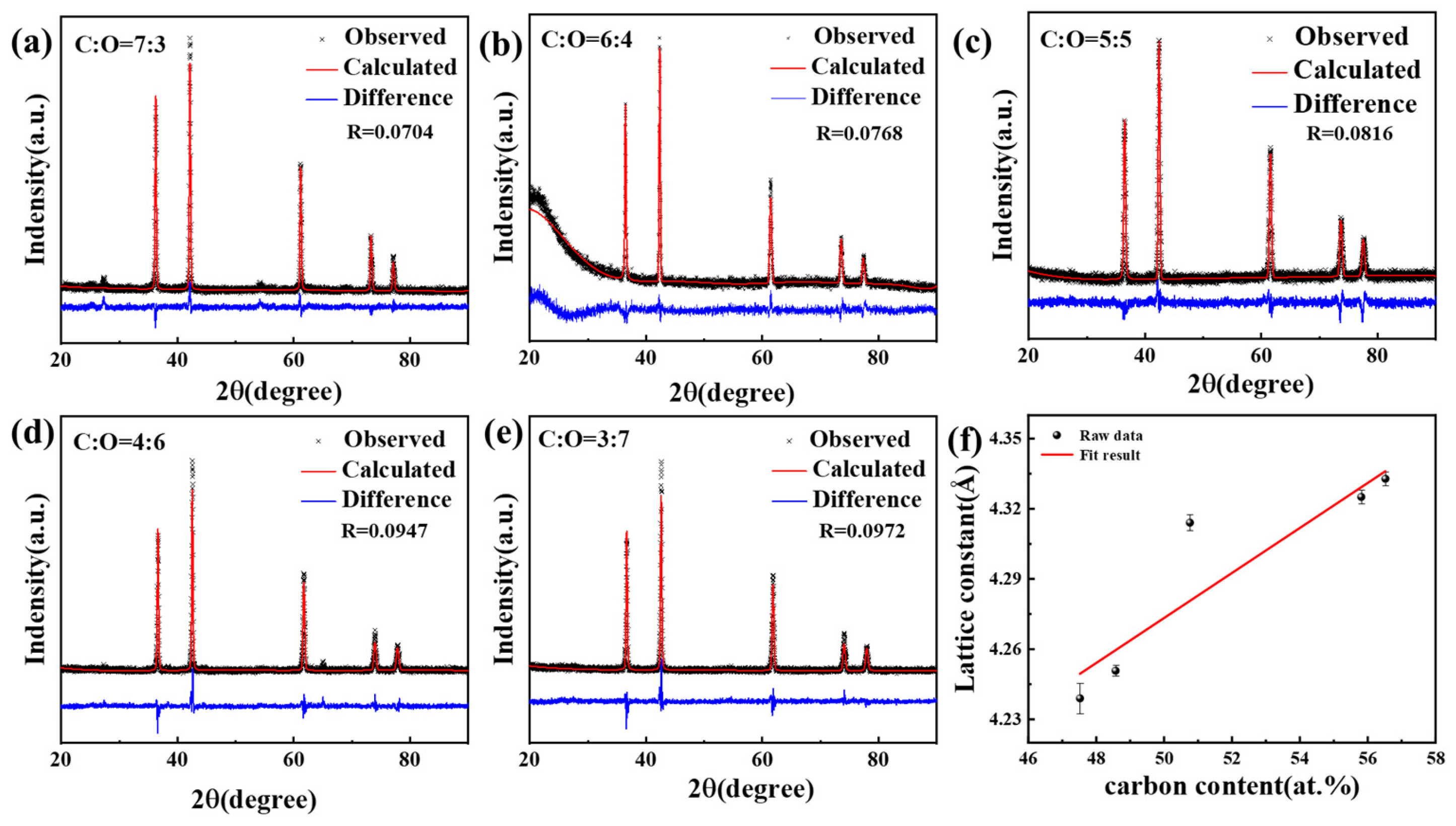 0.7 with different C to O ratios, according to Equation (4), The theoretical molar ratios of TiO