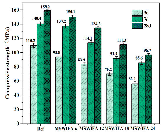 3.2. Effects of MSWIFA Content on the Mechanical Properties of UHPC