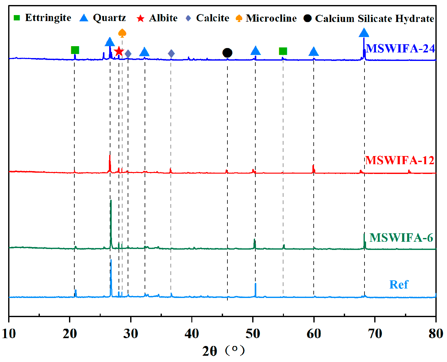 - Wang, B.; Ding, W.; Fan, C. Immobilization properties and reaction mechanism of municipal solid waste incineration fly ash with alkali activation technology. J. Build. Eng. 2024, 91, 109559. [Google Scholar] [CrossRef]