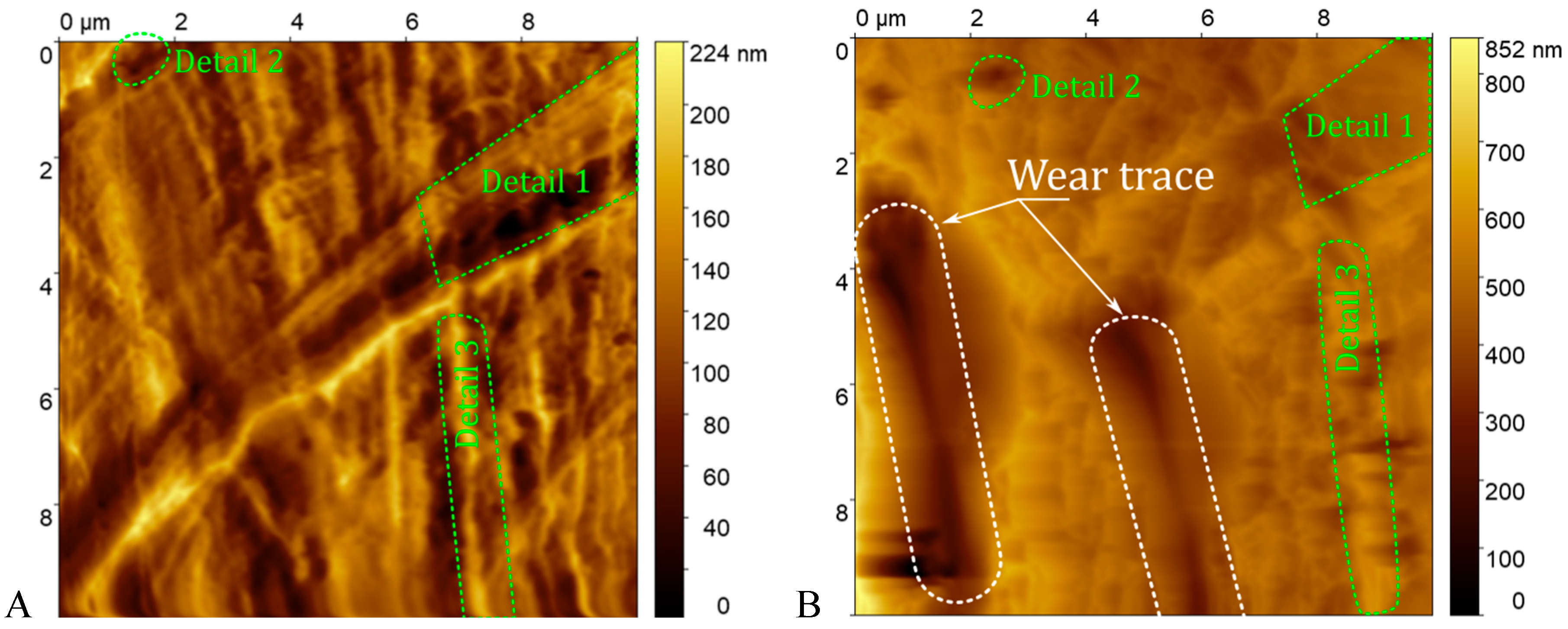 - Schöfer, J.; Santner, E. Quantitative Wear Analysis Using Atomic Force Microscopy. Wear 1998, 222, 74–83. [Google Scholar] [CrossRef]