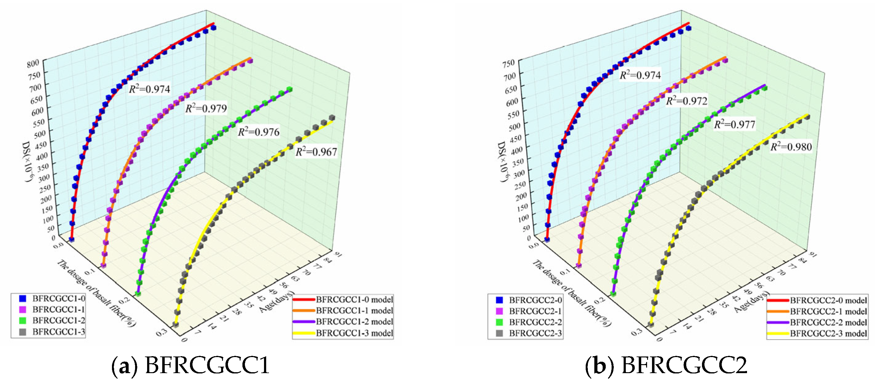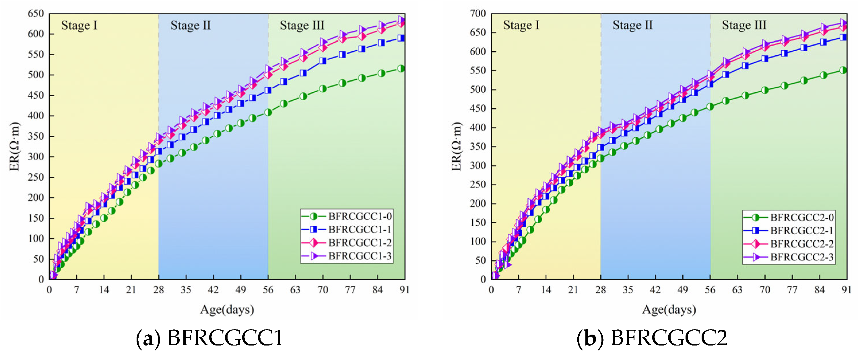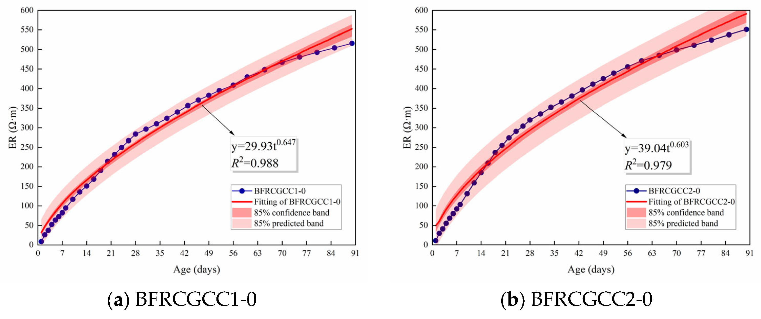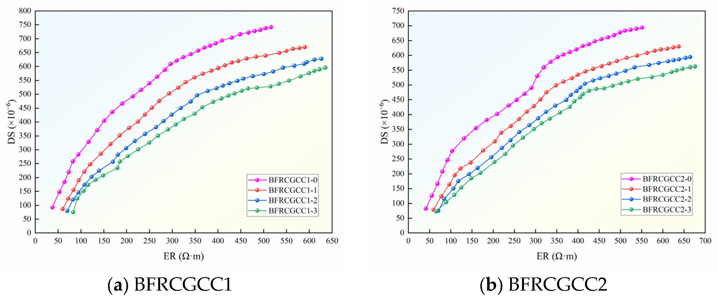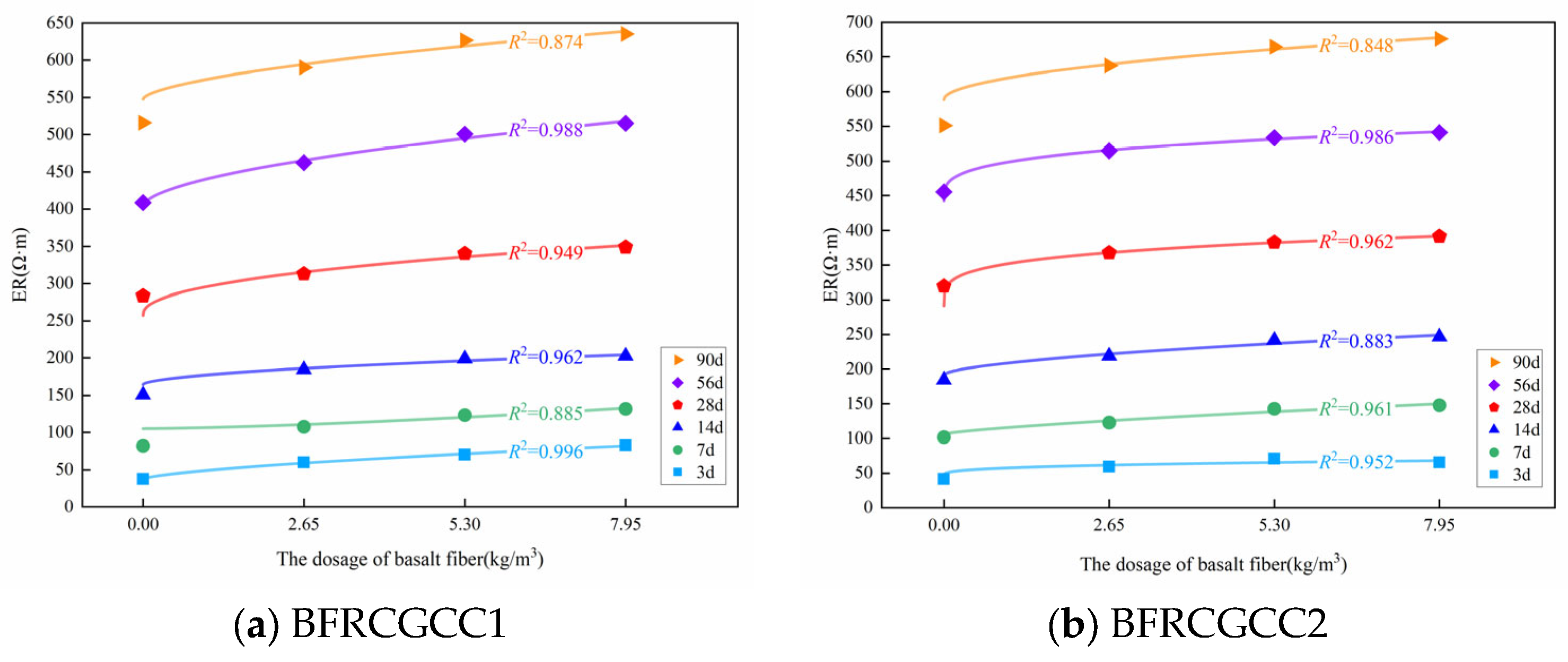 - Sun, Z.; Niu, D.; Zhang, L.; Zhang, J. Resistivity model of basalt-polypropylene fiber reinforced concrete. J. Funct. Mater. 2021, 52, 12190–12195. (In Chinese) [Google Scholar] [CrossRef]