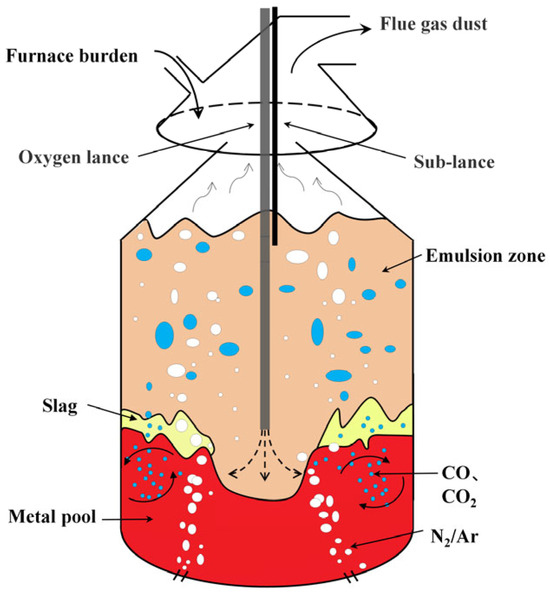 Figure 1. The objective of smelting is to reduce impurity elements in molten iron to meet specified thresholds and increase its temperature from 1350 °C to around 1650 °C [