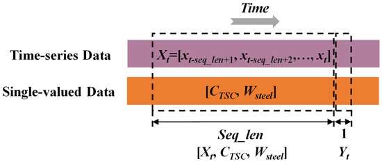 seq_len is determined through hyperparameter optimization. Additionally, single-valued data such as TSC carbon content and molten steel volume are concatenated with the temporal input of each data pair to form the complete input vector [