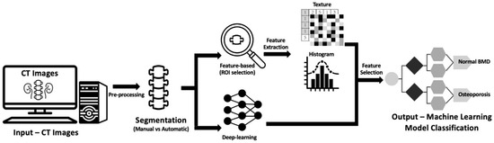 - Tong, X.; Wang, S.; Zhang, J.; Fan, Y.; Liu, Y.; Wei, W. Automatic Osteoporosis Screening System Using Radiomics and Deep Learning from Low-Dose Chest CT Images. Bioengineering 2024, 11, 50. [Google Scholar] [CrossRef]