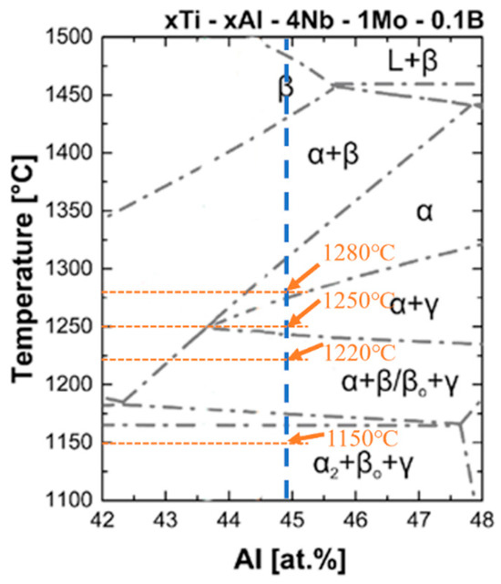 Binary phase diagram of xTi-xAl-4Nb-1Mo-0.1B [ at. %].