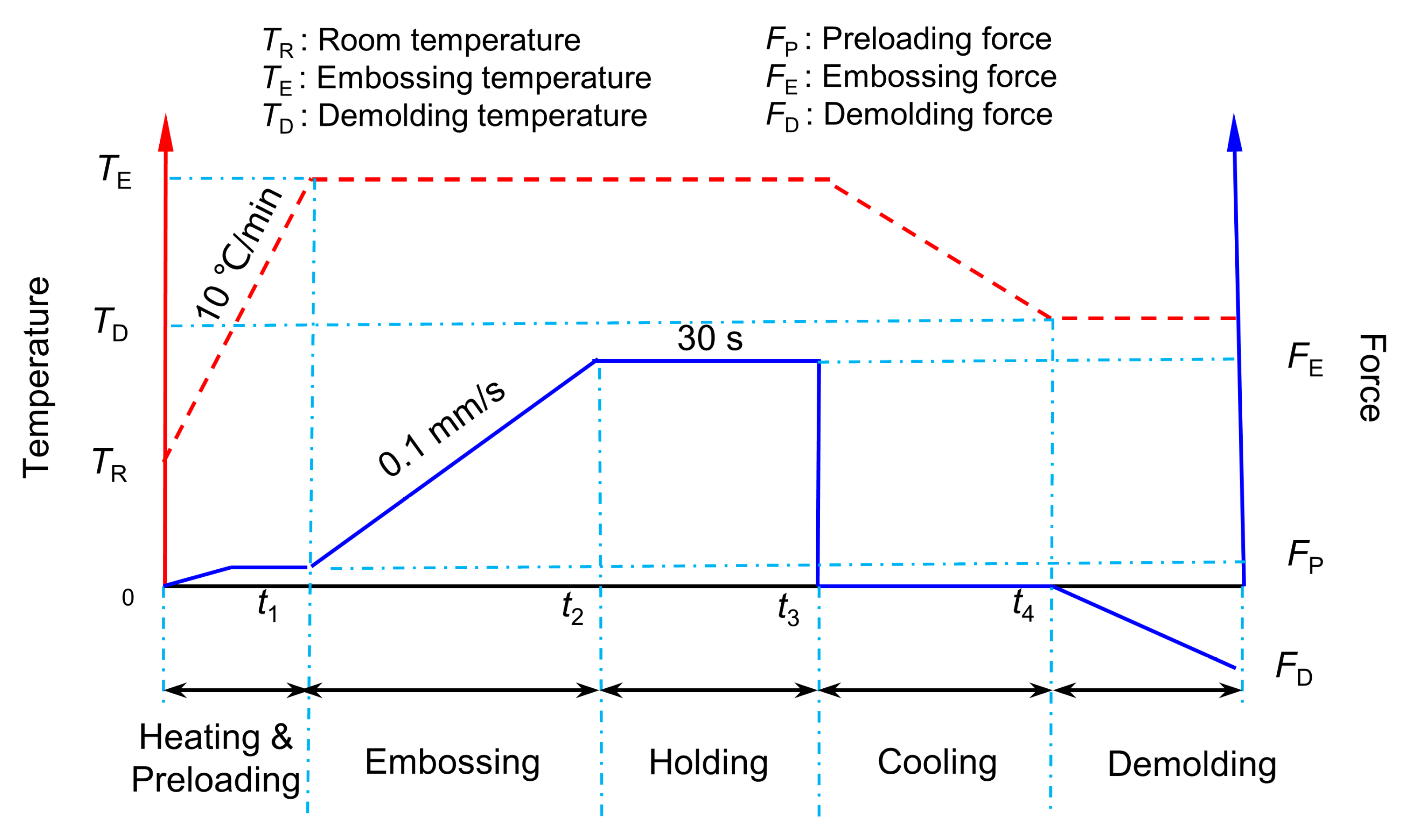 Process parameters for hot embossing.