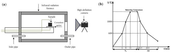 Referring to relevant research [18,19], the micro-sintering experiment was carried out with micro-sintering equipment (BR-14AS-12, 1400 °C, Bona Heat Kiln Co., Ltd., Zhengzhou, China) to determine the basic sintering characteristics of iron ore. Wu et al. [20] proposed a detection method for the basic characteristics of high-temperature sintering. The detailed methods are shown as follows: