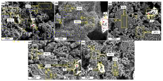 Microhardness detection results are shown in Table 9. As can be seen from Table 9, with increasing alkali metal content, the microhardness of iron-bearing minerals decreased, and that of SFCA decreased the most, while that of silicate had no obvious variation.