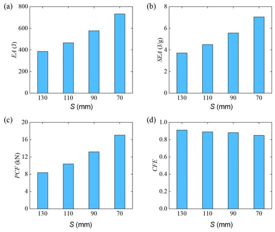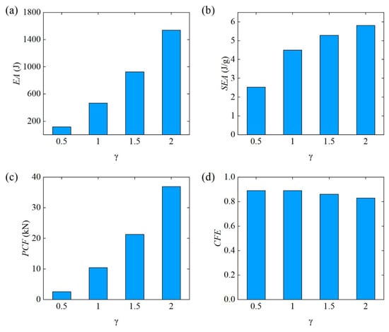 where, is the mass of the energy-absorbing structure. The higher the , the better the energy absorption capacity of the energy-absorbing structure.