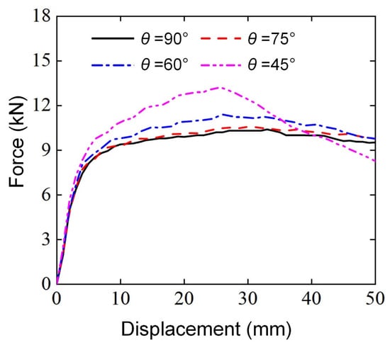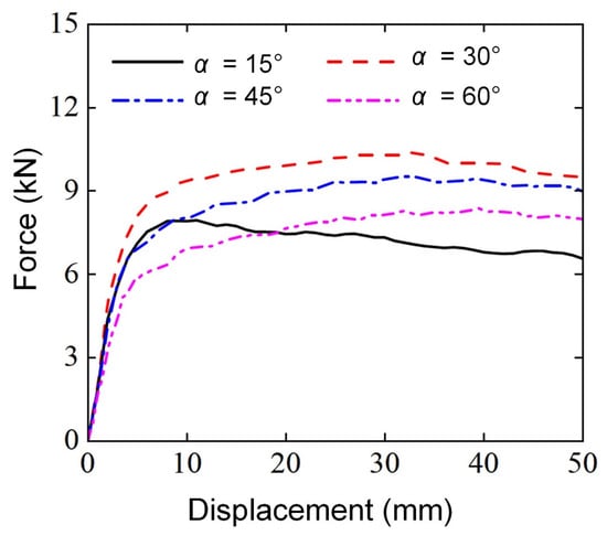 3.2.4. Effect of Loading Angle ()