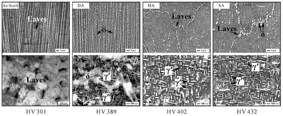 - Li, X.; Shi, J.J.; Wang, C.H.; Cao, G.H.; Russell, A.M.; Zhou, Z.J.; Li, C.P.; Chen, G.F. Effect of Heat Treatment on Microstructure Evolution of Inconel 718 Alloy Fabricated by Selective Laser Melting. J. Alloys Compd. 2018, 764, 639–649. [Google Scholar] [CrossRef]