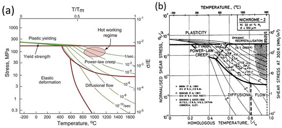 - Frost, H.; Ashby, M. Deformation-Mechanism Maps: The Plasticity and Creep of Metals and Ceramics; Material Science, Engineering; Franklin Book Company: Elkins Park, PA, USA, 1982. [Google Scholar]