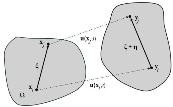 Figure 2 shows the geometrical relations between the undeformed Ω and deformed body Ω’. The vector ξ represents the position of the point xj with respect to xi. The displacement state with respect to the positions of points xi and xj is as follows: