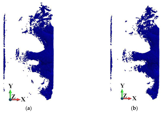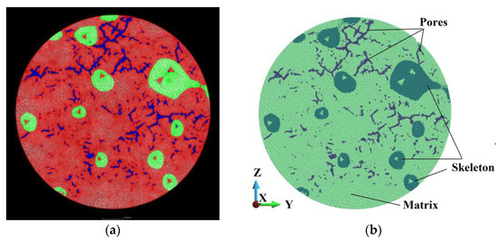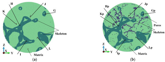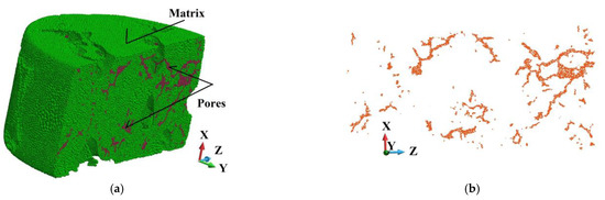 Figure 8a,b shows the skeleton and the cloud of voids in the sample’s matrix, respectively.