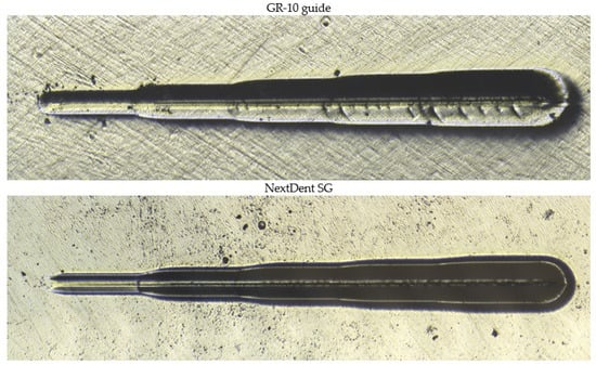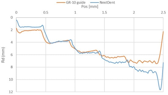 | Parameter [µm] | NextDent SG Orange | GR-10 Guide | ||