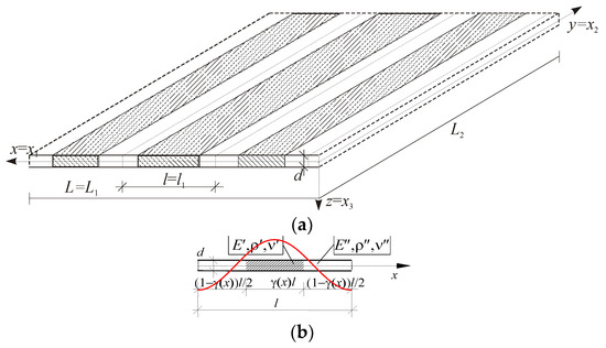 (a) A fragment of a thin functionally graded plate with a b-type tolerance-periodic (non-periodic) microstructure; (b) a cell of the plate with a fluctuation shape function.