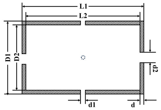 The structure of the cylindrical nanocrystalline magnetic shield is presented in Figure 2. The pump and probe laser are passed through the axial and radial holes, respectively. L1 and L2 are the outer and inner lengths, respectively. D1 and D2 represent the outer and inner diameters, respectively. d1 and d2 are the probe and pump hole diameters, respectively. t is the layer thickness.