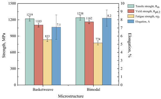 - Both the basketweave microstructure and the bimodal microstructure exhibit high KAM values. The degree of plastic deformation of the β matrix is greater than that of the α phase due to the higher KAM value. This inconsistency of plastic deformation of the phases will lead to the nucleation of fatigue cracks.