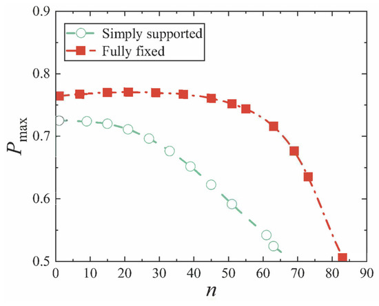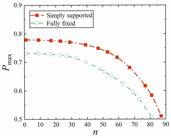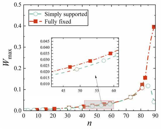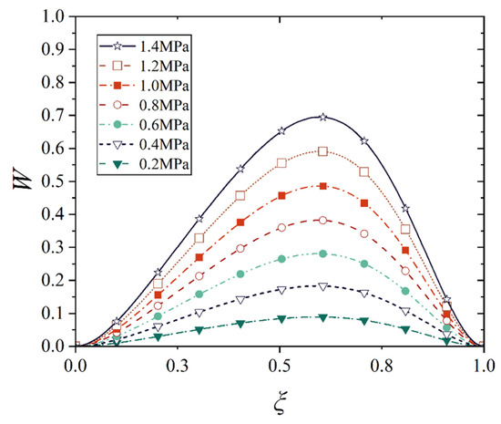 The dimensionless maximum deflection Wmax of conical shell under mechanical load.