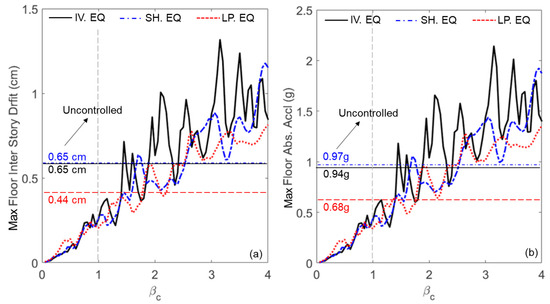 - The peak absolute acceleration of the superstructure normalized to the same response of the building without the PFSMBI system.