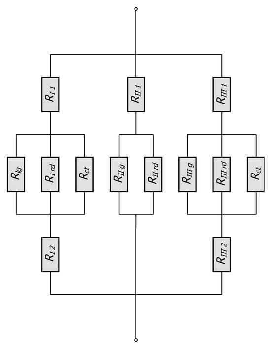 The presented model is based on the analysis of thermal resistances relating to individual heat transfer mechanisms that occur during the heating of the medium considered. This approach is based on the analogy of the two phenomena, namely electrical and thermal conduction, which results from the similarity of the mathematical description of Ohm and Fourier laws [42]. In numerous instances, this method serves as an efficient alternative for tackling intricate heat transfer issues in heterogeneous systems, providing a simpler solution compared to more advanced numerical techniques [43,44,45,46].