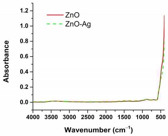 FTIR spectra obtained for ZnO and ZnO-Ag.