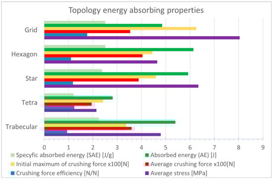 Graphical comparison of the energy-absorbing parameters of the topologies studied [25].