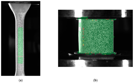 Standard mechanical tests using the DIC system: (a) tensile test; (b) compression test.