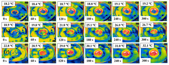Figure 10a–c show that under one sun, the surface center temperature of Populus tomentosa Carr.@Fe-GA increased to ~32.1 °C within 300 s, while within the same time interval, the simulated seawater and Populus tomentosa Carr. surface center temperature could only reach~19.7 °C and 26.7 °C, respectively. Populus tomentosa Carr.@Fe-GA showed a high thermal response and excellent temperature rise rate, with potential photothermal evaporation characteristics.