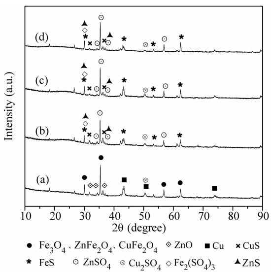 - XRD results confirmed that the active components of zinc ferrite (ZnFe2O4), copper ferrite (CuFe2O4), Fe3O4, ZnO, and Cu were converted into metal sulfates and metal sulfides as a result of SO2 removal by the FZC sorbent.