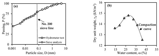 - ASTM D1557-12; Standard Test Methods for Laboratory Compaction Characteristics of Soil Using Modified Effort. ASTM International: West Conshohocken, PA, USA, 2012. [CrossRef]