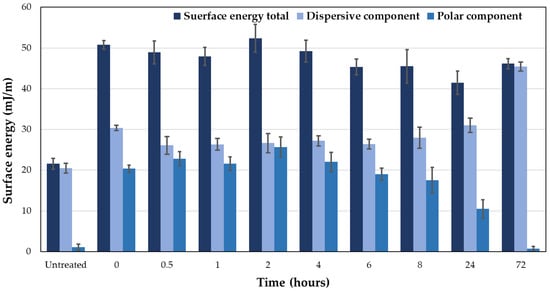 27]. For each sample, at least five drops were analyzed and averaged using the sessile drop technique. The solid surface free energy components were calculated using the Owens–Wendt–Rable–Kaelble (OWRK) model [