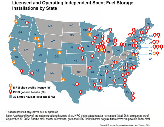 Locations of the US licensed and operating independent fuel storage installations. Reproduced with permission from [2].