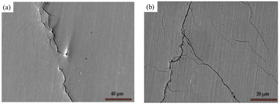 The SEM images of the crack morphology of CISCC cracks in the secondary electron mode. (a) U bend made from the as-received plate and (b) U bend made from the weld joint. Reproduced with permission from [17].