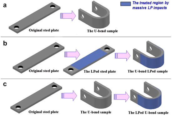 The three types of U bends are made from (a) flat plate, (b) LSPed flat plate and a further U bend, (c) U bend made from the flat plate and a further LSPed U bend. Reproduced with permission from [76]. Copyright 2012, Elsevier.