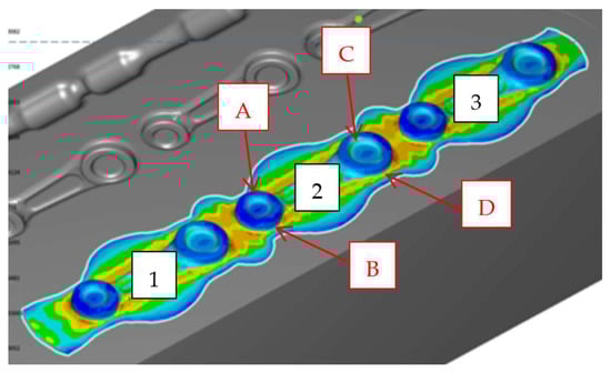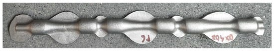- Geometry measurements of the forgings and a hardness analysis of the obtained forgings were carried out with the use of fine control and measurement equipment, including calipers, a micrometer, a Werth measuring projector, a Mahr XC20 contour gauge (MarSurf XC 20 software, Mahr Poland Sp. z o.o., Warsaw, Poland) and a Mitutoyo Strato 776 automatic measuring machine (MCOSMOS 5 software, Mitutoyo Poland Sp. o.o., Wroclaw, Poland). The hardness measurements were performed with the use of an EMCOTEST hardness tester (EMCO-TEST Prüfmaschinen GmbH, Kuchl, Austria).