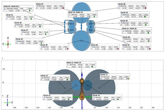| Sample No. | Diameter Ø22 ± 0.1 (mm) | Diameter Ø19 ± 0.3 (mm) | Thickness 10.8 + 0.6 (mm) | Thickness 3.3 ± 0.2 (mm) | Distance from the Axis 53 ± 0.1 (mm) | Visual Inspection | |