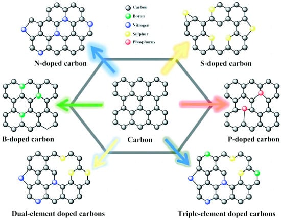 Schematic diagram of the structures of various heteroatom-doped carbons [119].