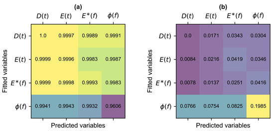 The goodness of fit of the Prony-series calculated by the ELiCon v0.1 worksheet and the empirical RAMBO model has been measured using the adjusted coefficient of determination and the standard error ratio. In the four master curve groups there were 4 × 4 = 16 master curves and the comparative matrices of