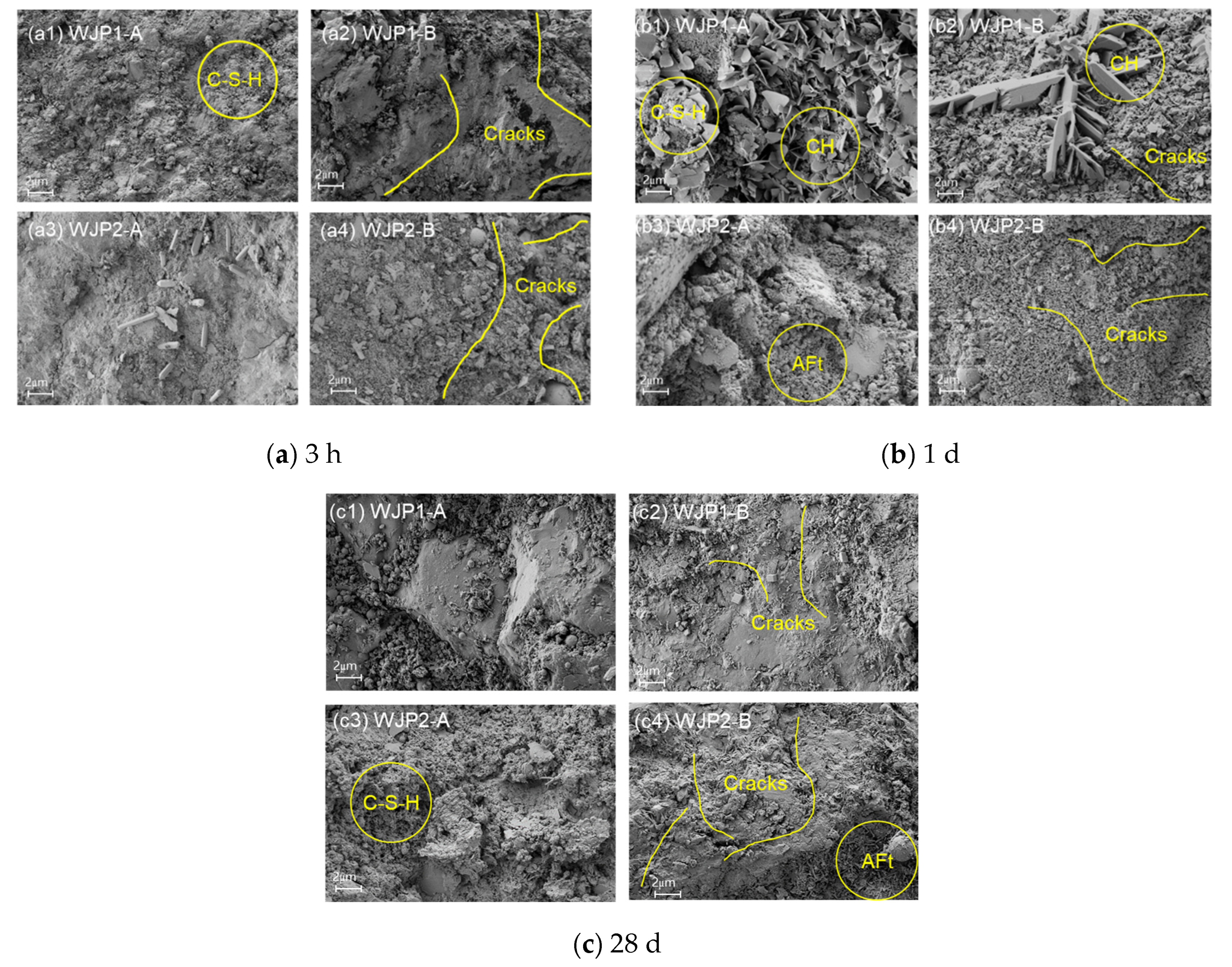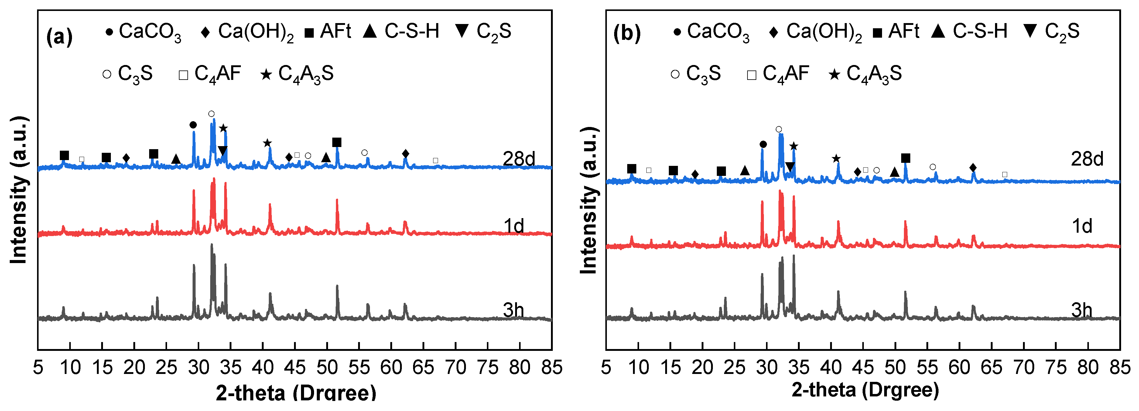 - Wang, H.; Feng, P.; Liu, X.; Shi, J.; Wang, C.; Wang, W.; Li, H.; Hong, J. The Role of Ettringite Seeds in Enhancing the Ultra-Early Age Strength of Portland Cement Containing Aluminum Sulfate Accelerator. Compos. Part B Eng. 2024, 287, 111856. [Google Scholar] [CrossRef]