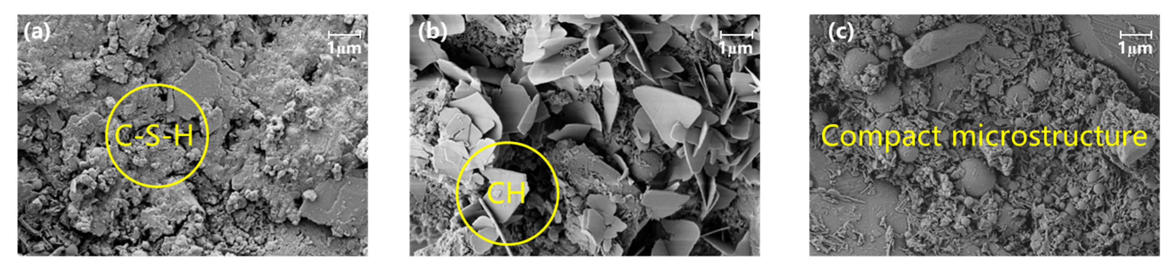 - Han, F.; Wang, J.; Ji, X.; Chen, S.; Liu, J.; Wu, M.; Liu, J. Insights into the Hydration Kinetics and Microstructural Evolution of Ultra-High Performance Cementitious Composite at Mid-to-Low Curing Temperatures. Constr. Build. Mater. 2025, 468, 140403. [Google Scholar]