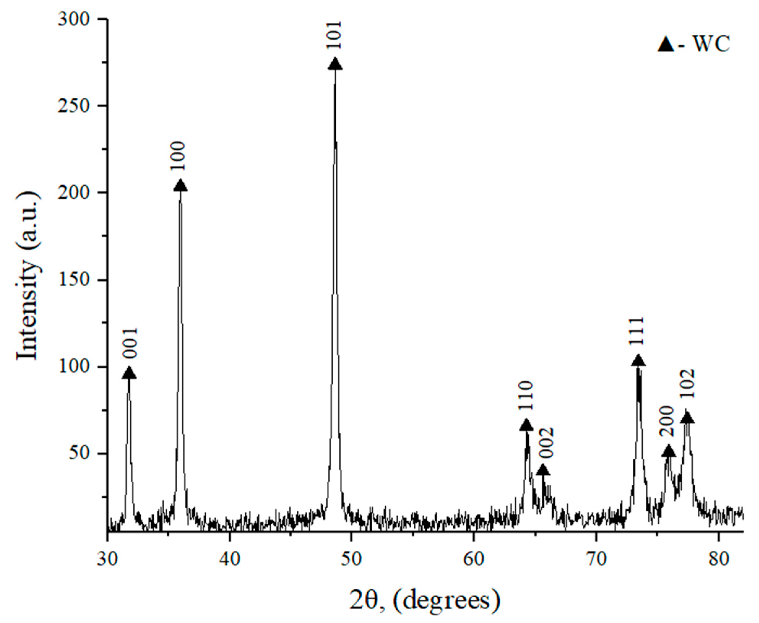 34]. The obtained XRD data correlates with microstructural features and properties, in particular, an increased percentage of W