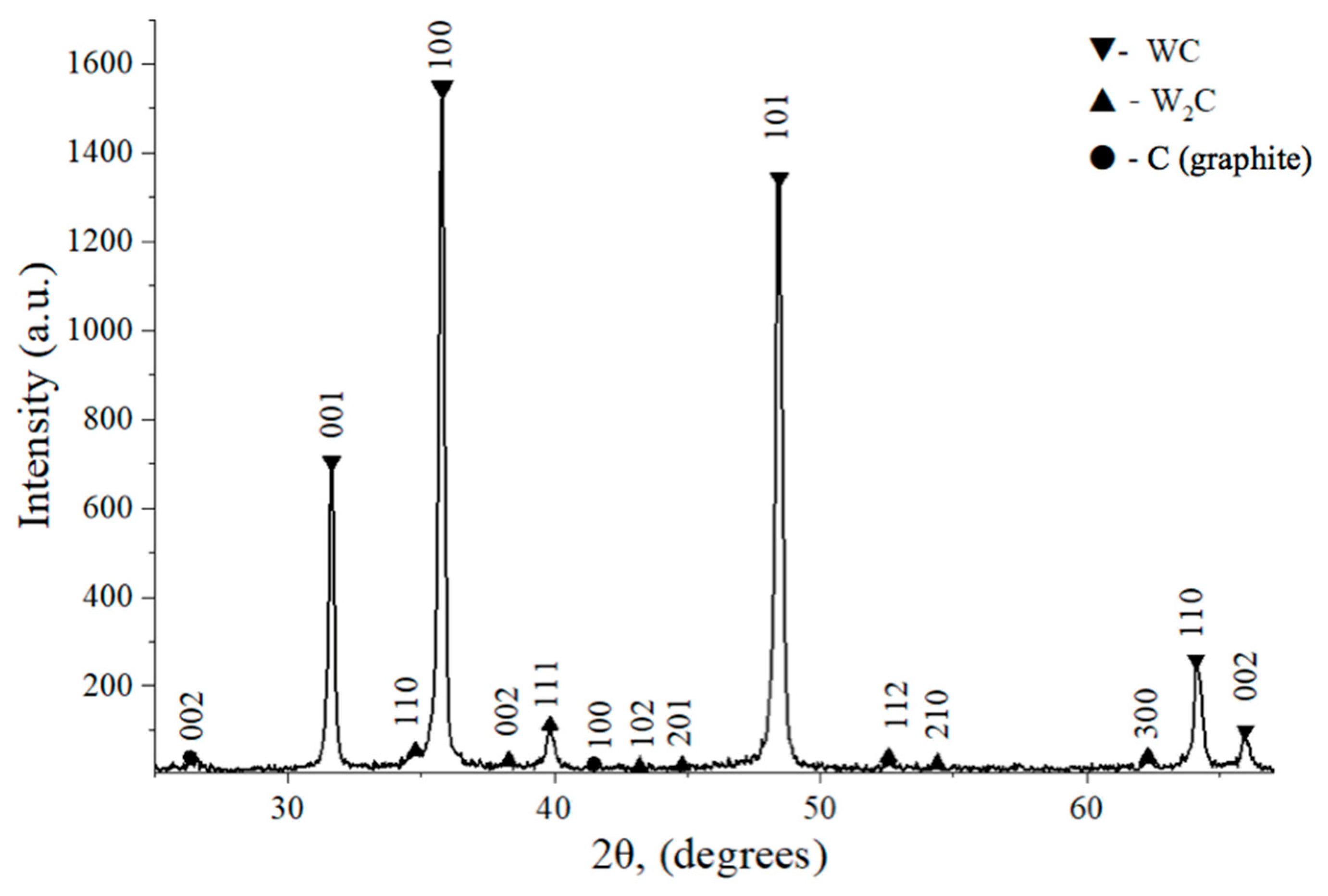 2C phase contributes to the reduced strength of the material and its increased hardness. Sintering in vacuum or carbon-deficient conditions (e.g., due to oxidation of carbon or carbon loss to reaction with residual oxygen) can lead to WC decomposition via the intermediate W